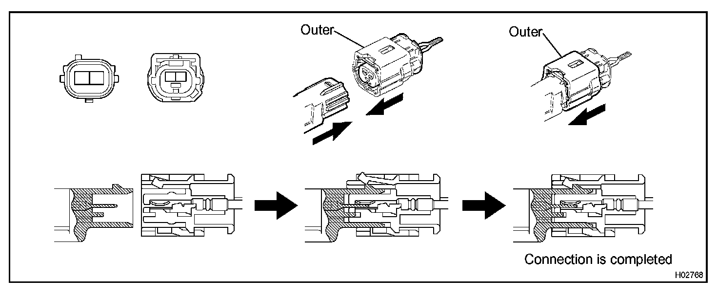 a. Connect the connector as shown in the illustration. (When locking, make sure that the outer returns to its original position and a click sound can be heard.)