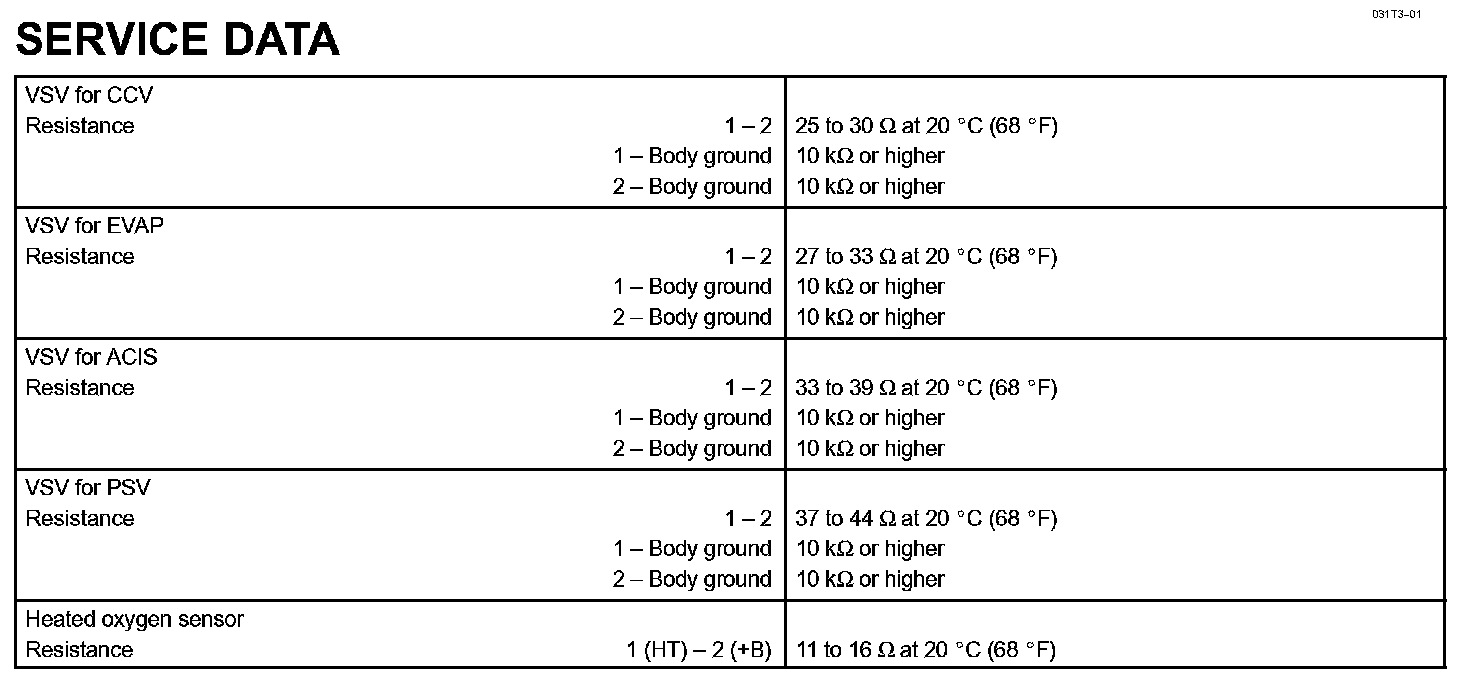 Emission Control - Service Data:
