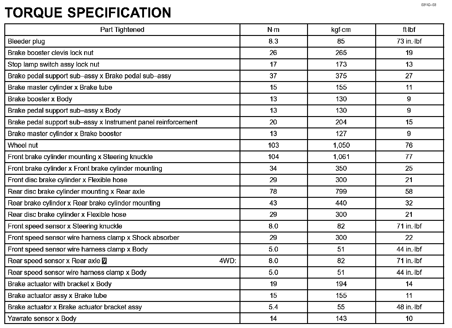 Brake - Torque Specification: