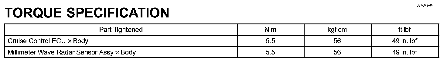 Cruise Control - Torque Specification: