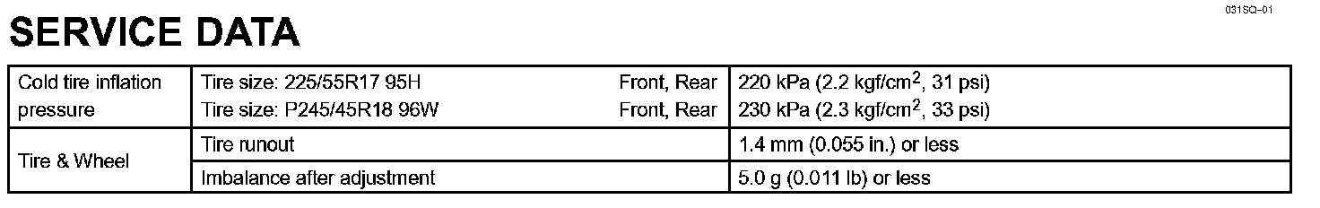 Tire & Wheel - Service Data: