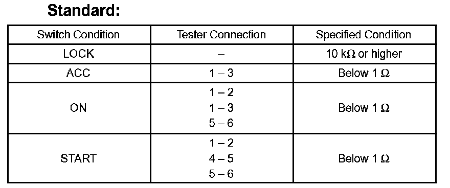 INSPECT IGNITION OR STARTER SWITCH ASSY