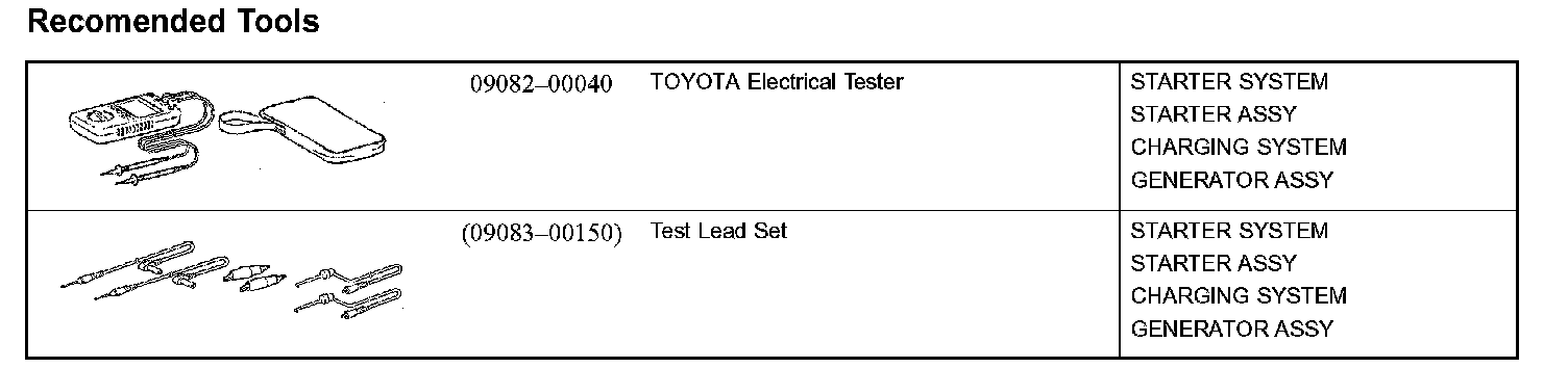 Starting & Charging - Recommended Tools: