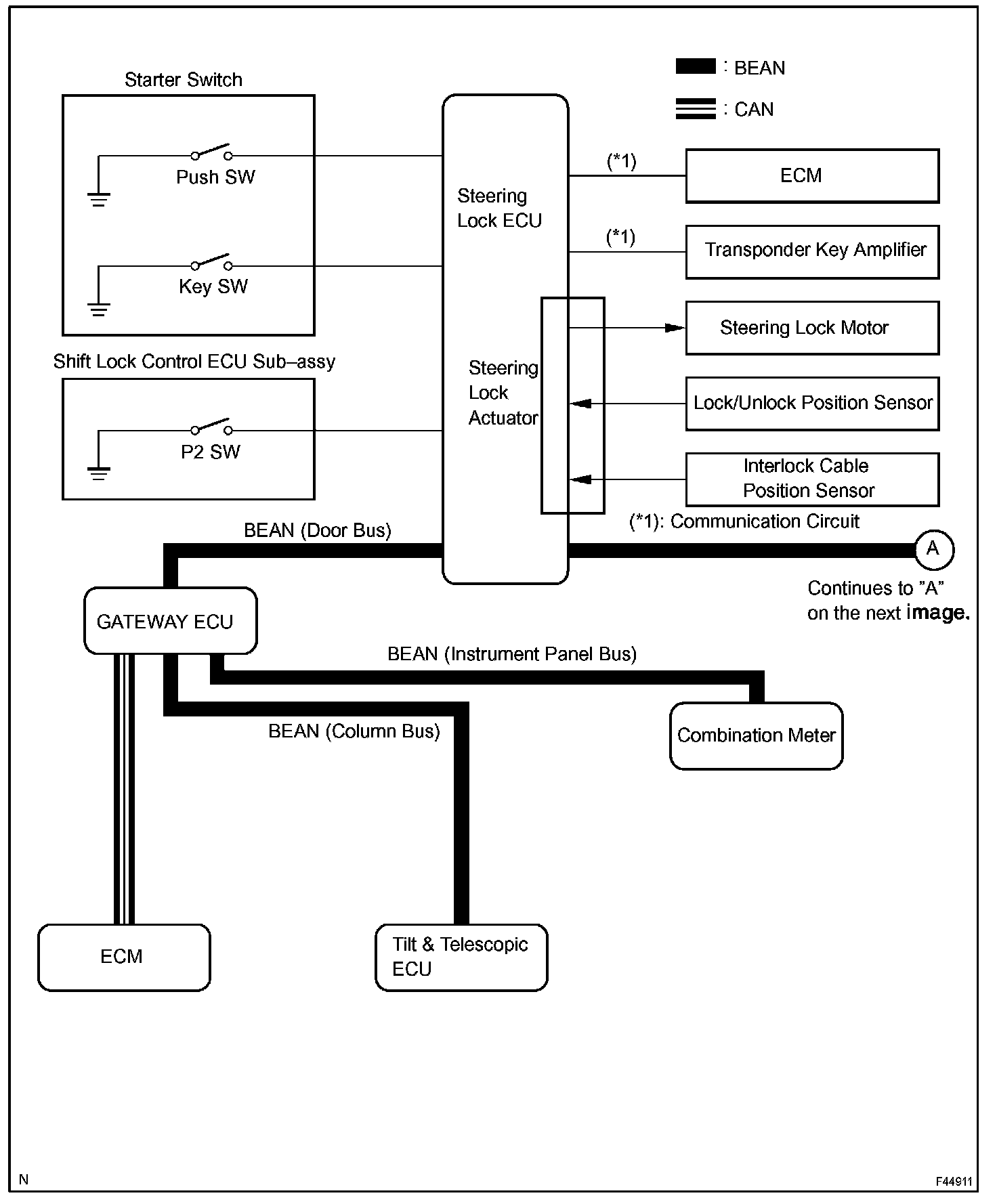 a. The steering lock system consists of a starter switch, interlock cable, steering lock actuator, and steering lock ECU. The steering lock ECU is built into the steering lock actuator.