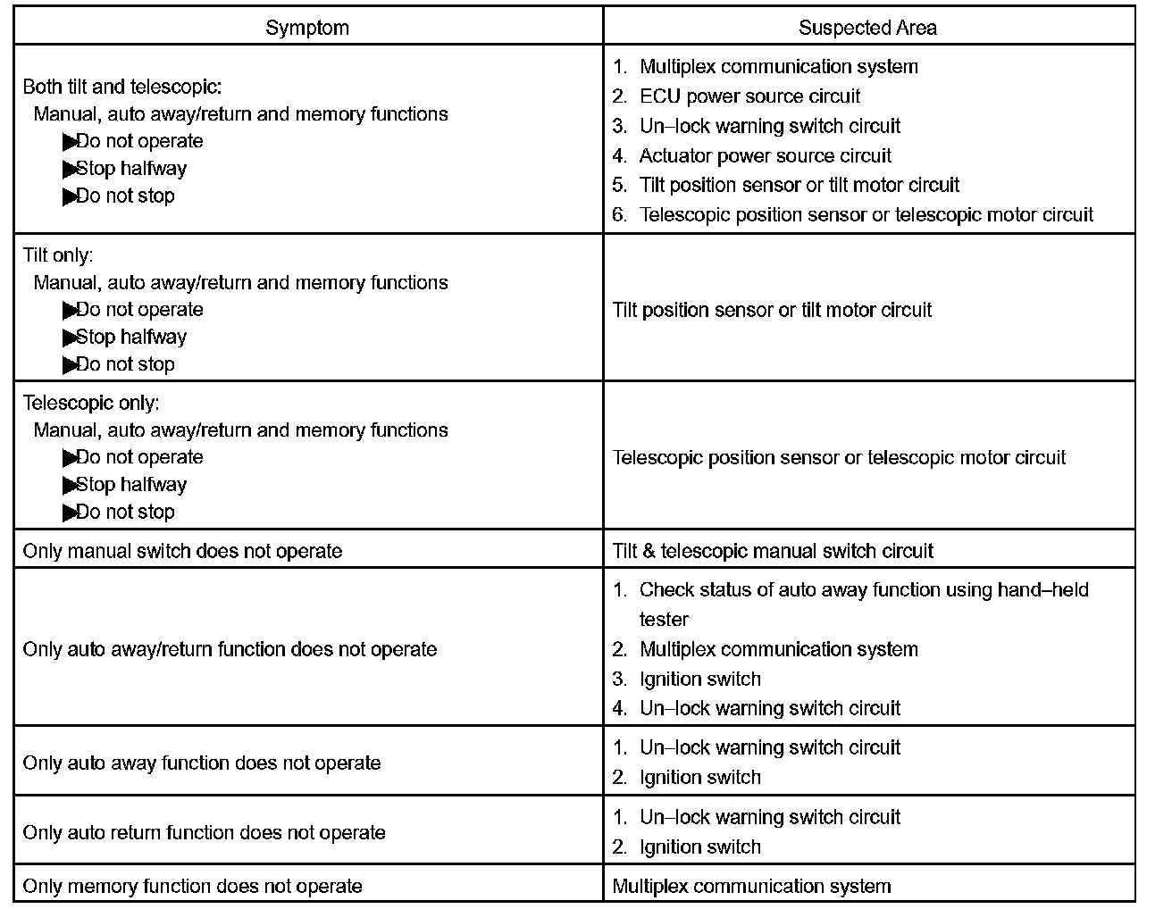 The power tilt & power telescopic steering column system uses the multiplex communication system, so check its diagnostic system before proceeding to troubleshooting.