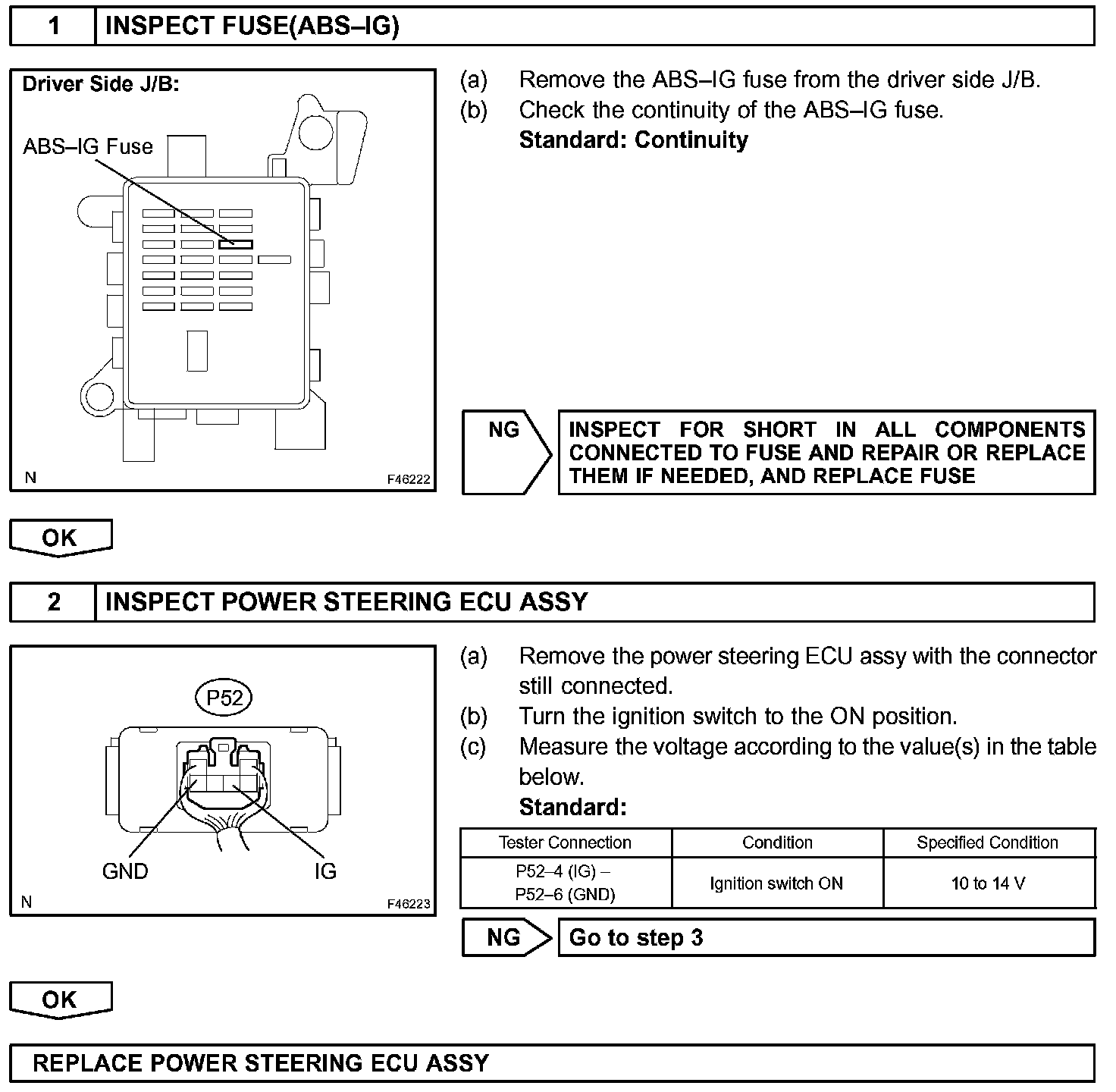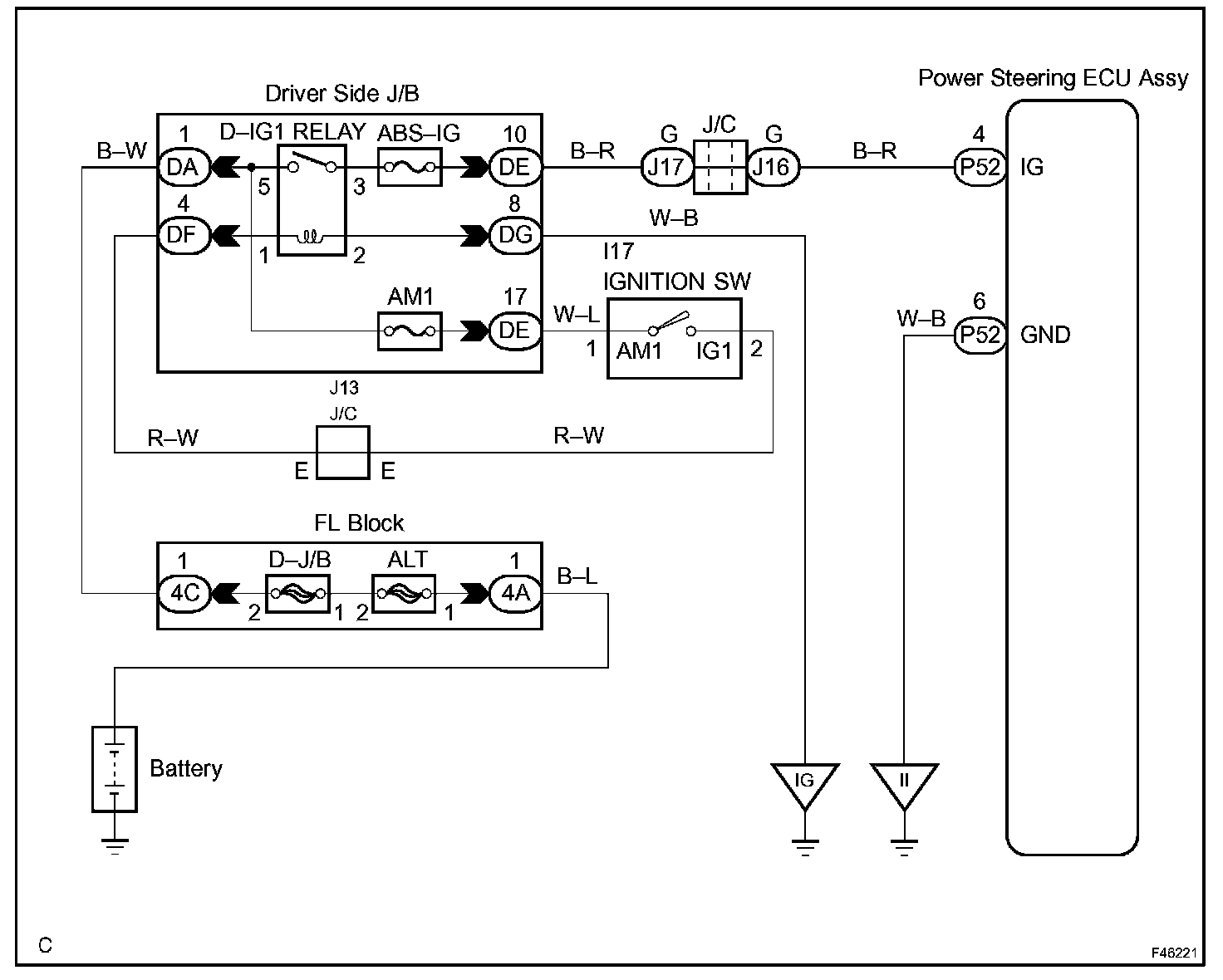 The IG power source circuit supplies battery voltage to the power steering ECU assy. This power source operates the PPS linear solenoid valve assy.