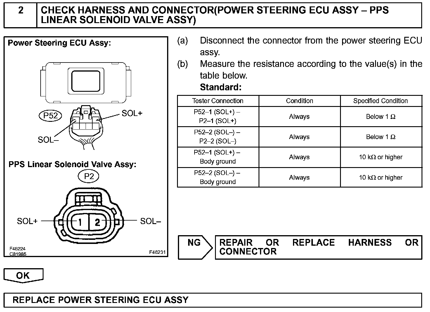 The power steering ECU assy controls the output current to the PPS linear solenoid valve assy in accordance with vehicle speed, adjusting the amount of power steering assist.