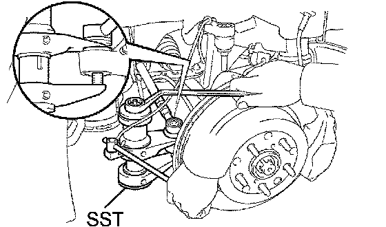 c. Using SST, separate the toe control link sub-assy RH from the rear axle carrier.