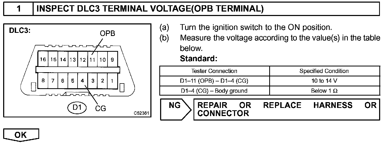 By connecting terminals OPB and CG of the DLC3, vehicle height control is not carried out.