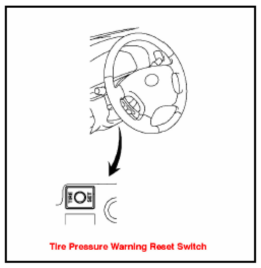 3. Push and hold the tire pressure warning reset switch for 3 seconds until the low tire pressure warning and "Pressure Initial" light goes off on the multi-information display.