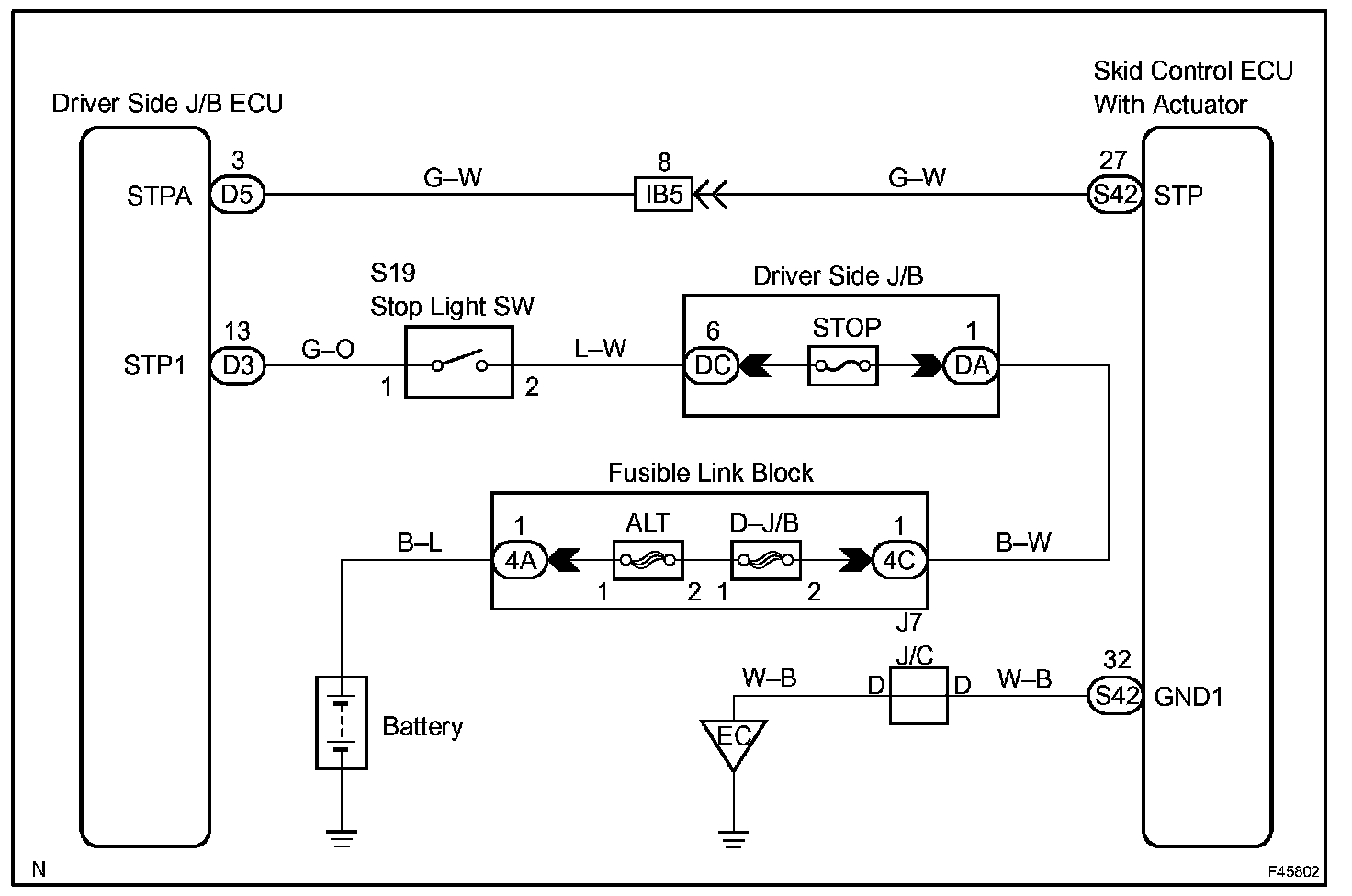 When the stop lamp switch is on (brake pedal is depressed), the skid control ECU prevents tire pressure warning system operation.