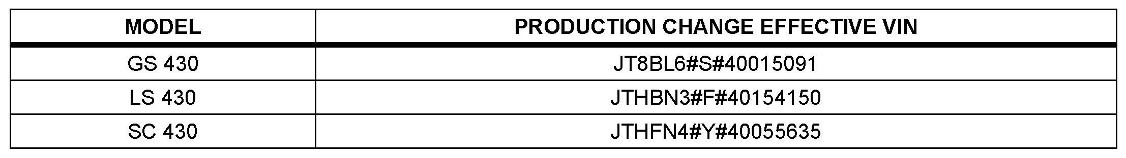 - 2004 model year GS 430, LS 430 & SC 430 vehicles equipped with 3UZ-FE engines produced BEFORE the Production Change Effective VINs shown below.