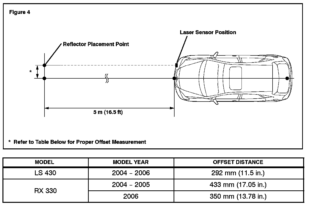 TSIB REVISION NOTICE: January 4, 2006: 2004 -- 2006 model year LS 430 vehicles have been added to Applicable Vehicles. Offset distances have been updated in step 2.E of the Adjustment Procedure. Previous versions of this TSIB should be discarded.