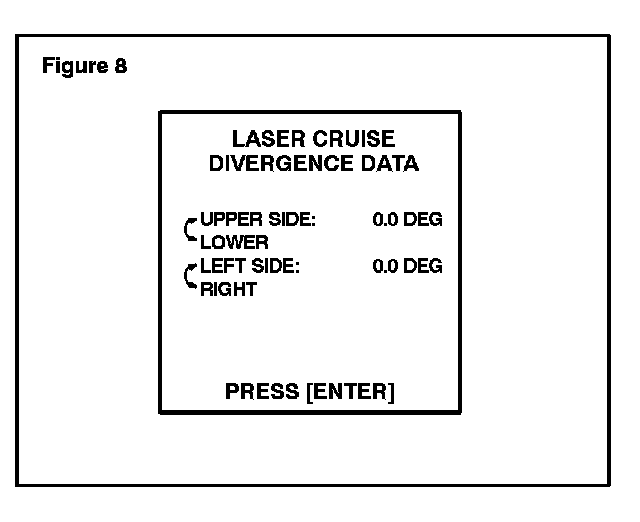 If the angle indicators do NOT show "and the system beep is NOT heard, verify that the current divergence angles are within the Standard Values for Divergence listed in the table in step 4H. If value is out of range, go to step 1 and repeat the adjustment procedure.
