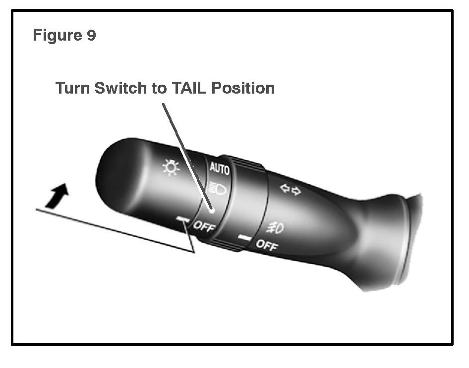 The headlight switch must be in the "OFF" position before performing beam axis adjustment. If the light switch is in the TAIL, HEADLIGHT or "AUTO" position, the beam axis adjustment may fail.