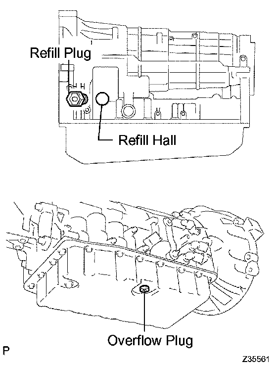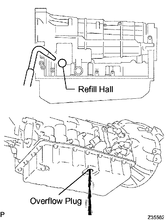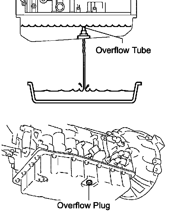 HINT: "Overflow" indicates the condition that ATF drains out from the overflow tube.