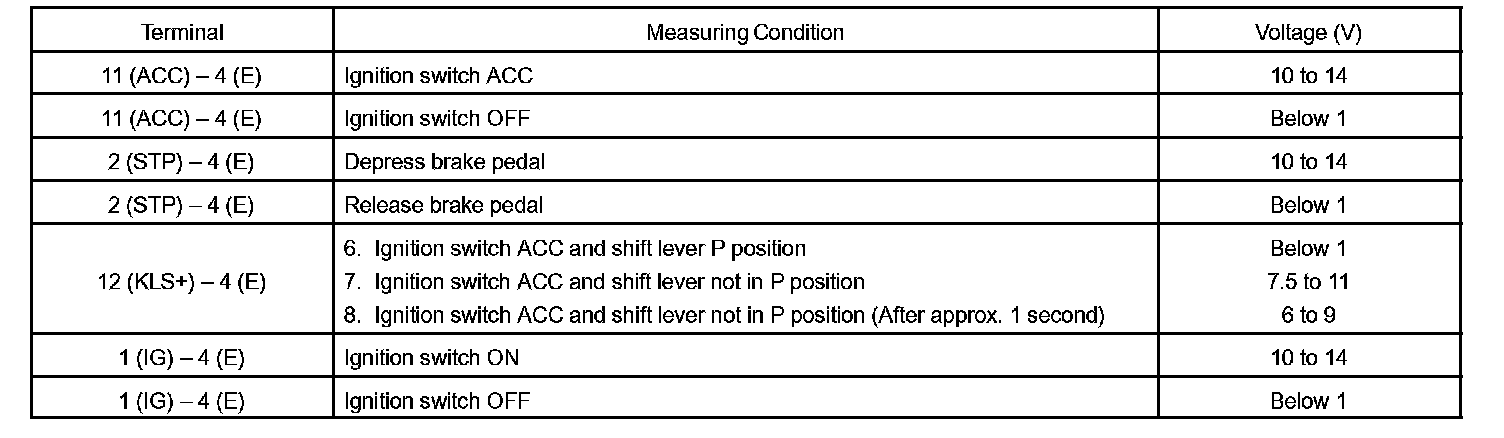 SHIFT LOCK SYSTEM (ATM)ON-VEHICLE INSPECTION