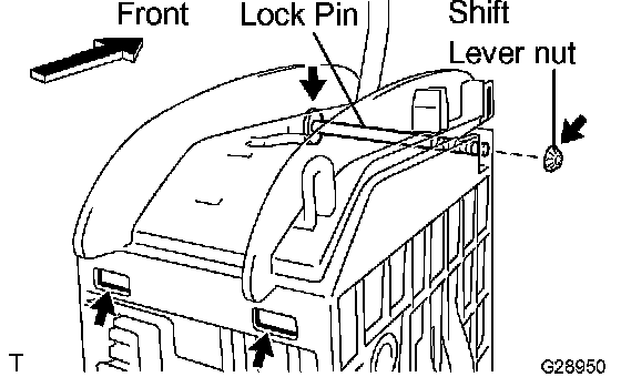 NOTICE: First remove the shift lever nut and lock pin, then disengage the 2 claws.