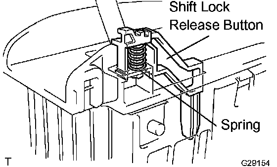 a. Remove the shift lock release button and spring from the floor shift assy.