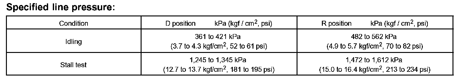 Quickly read the highest line pressure when engine speed reaches stall speed.