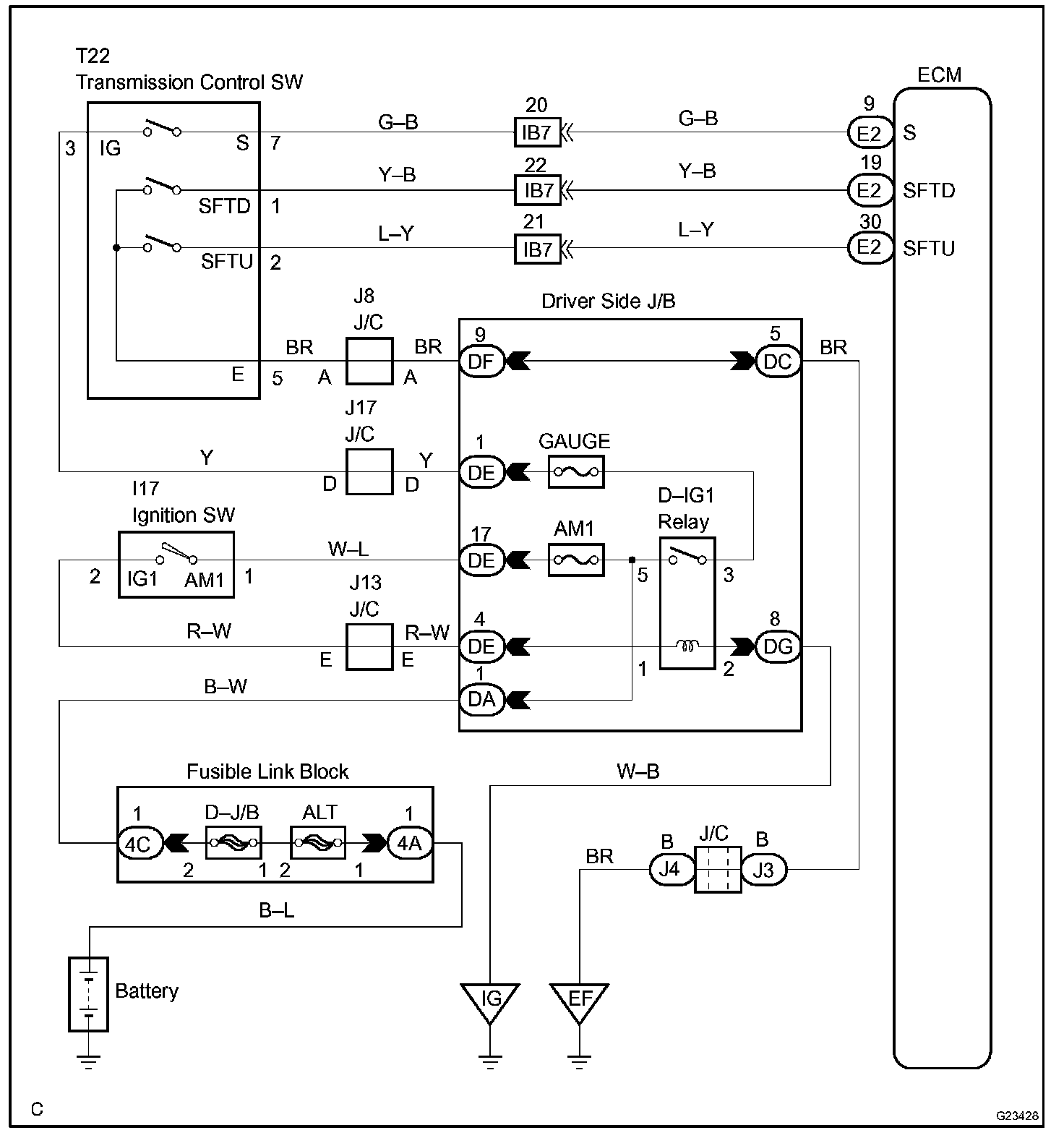 Shifting up "+" once raises one shift range position, and shifting down "-" lowers one shift range position.
