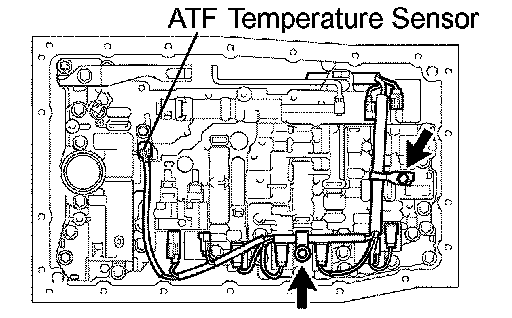 d. Install the ATF temperature sensor and lock plate with the bolt.