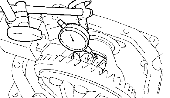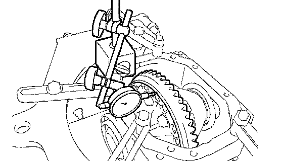 a. Using a dial indicator, measure the ring gear runout.
