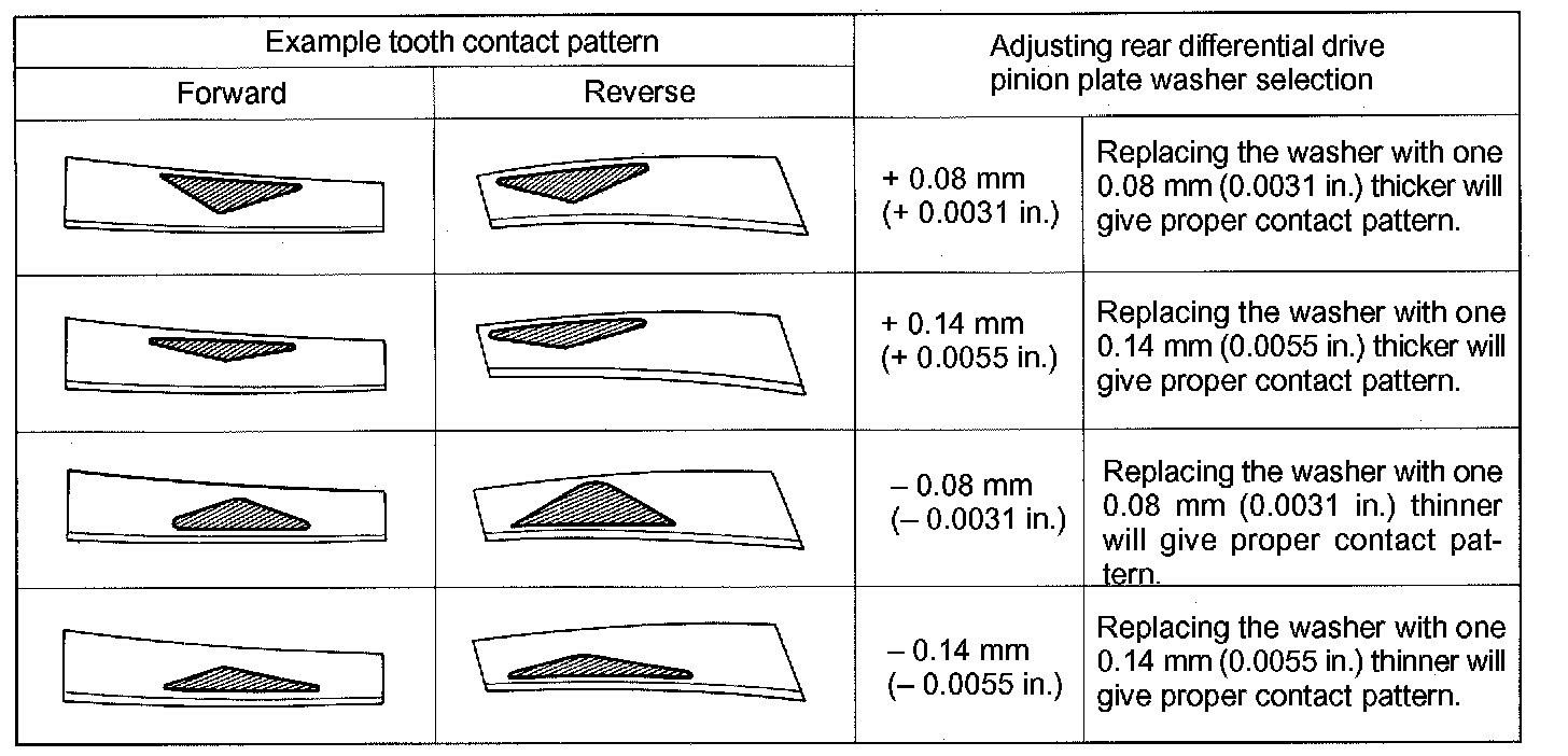 If tooth contact pattern is not correct, replace the adjusting washer installed on the front of the drive pinion rear bearing to adjust it.