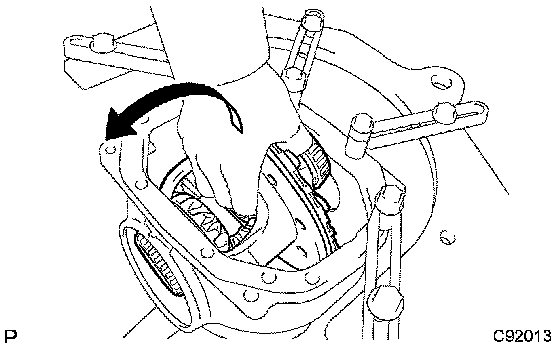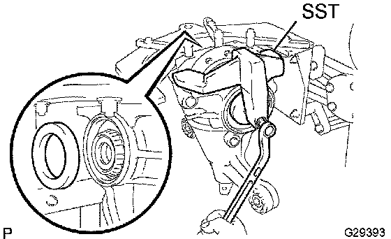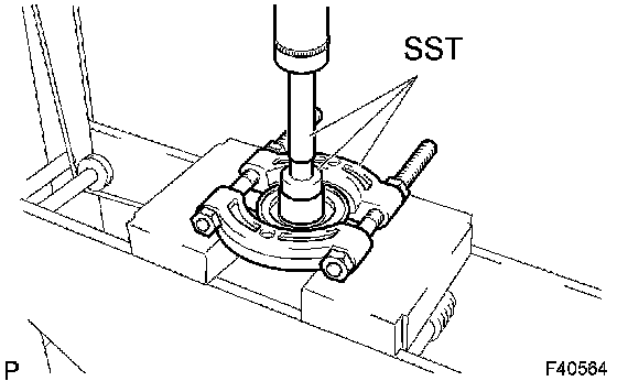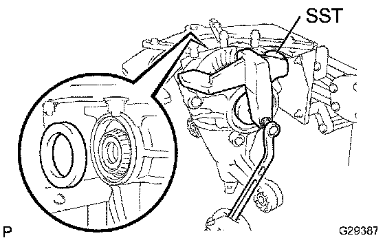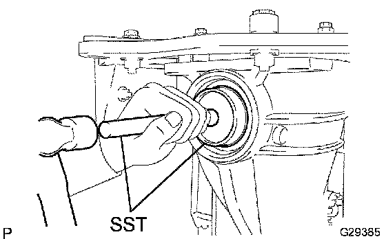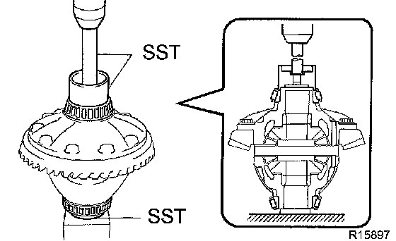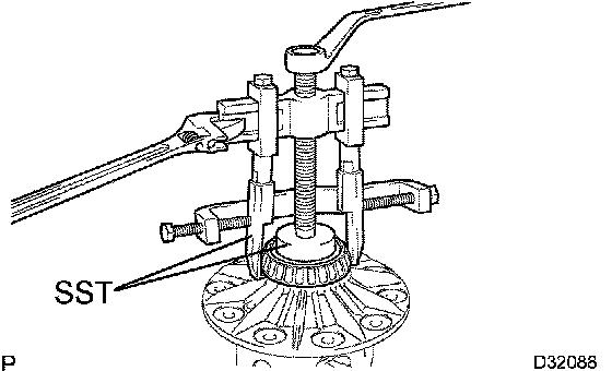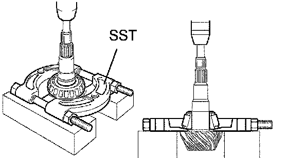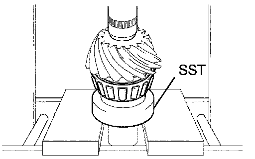 ^ Hook the claws of the SST to the bearing inner race from the differential case.