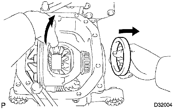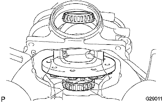 a. Install the drive side bearing in the differential carrier first, as shown in the illustration, then install the differential case.