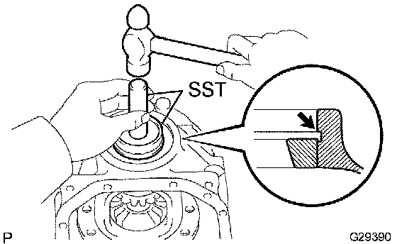 e. Using SST and a hammer, install the outer race on the ring gear side.