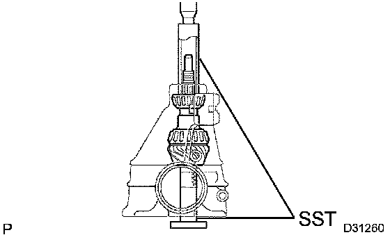 a. Using SST and a torque wrench, measure the preload with the teeth of the drive pinion and ring gear in contact.