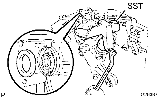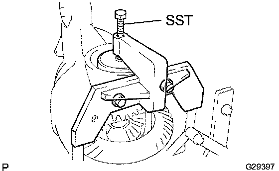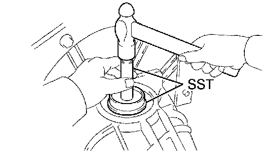 c. Tighten the SST bolt until the SST disc lightly touches to the case bearing (outer race).