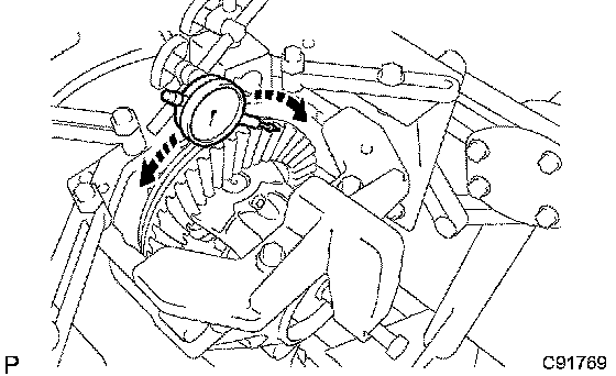 NOTICE: Observe the dial indicator to ensure that the shape of the differential carrier does not change more than 0.2 mm (0.008 inch).