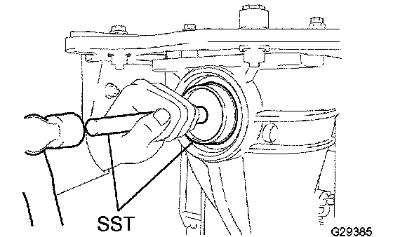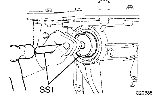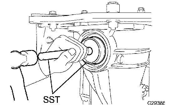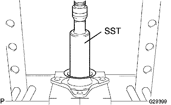 b. Using SST and a press, insert the new oil seal into the rear differential carrier.