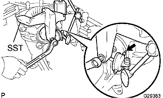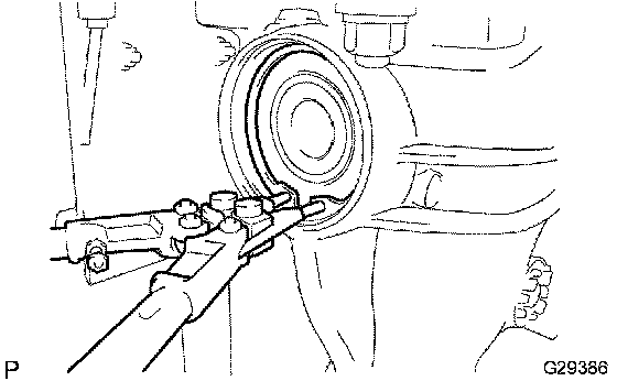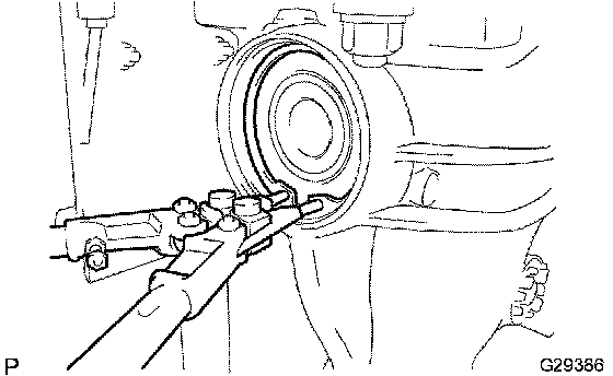 d. Remove the dial indicator and loosen the bolt until the SST disc is separated from the outer race.