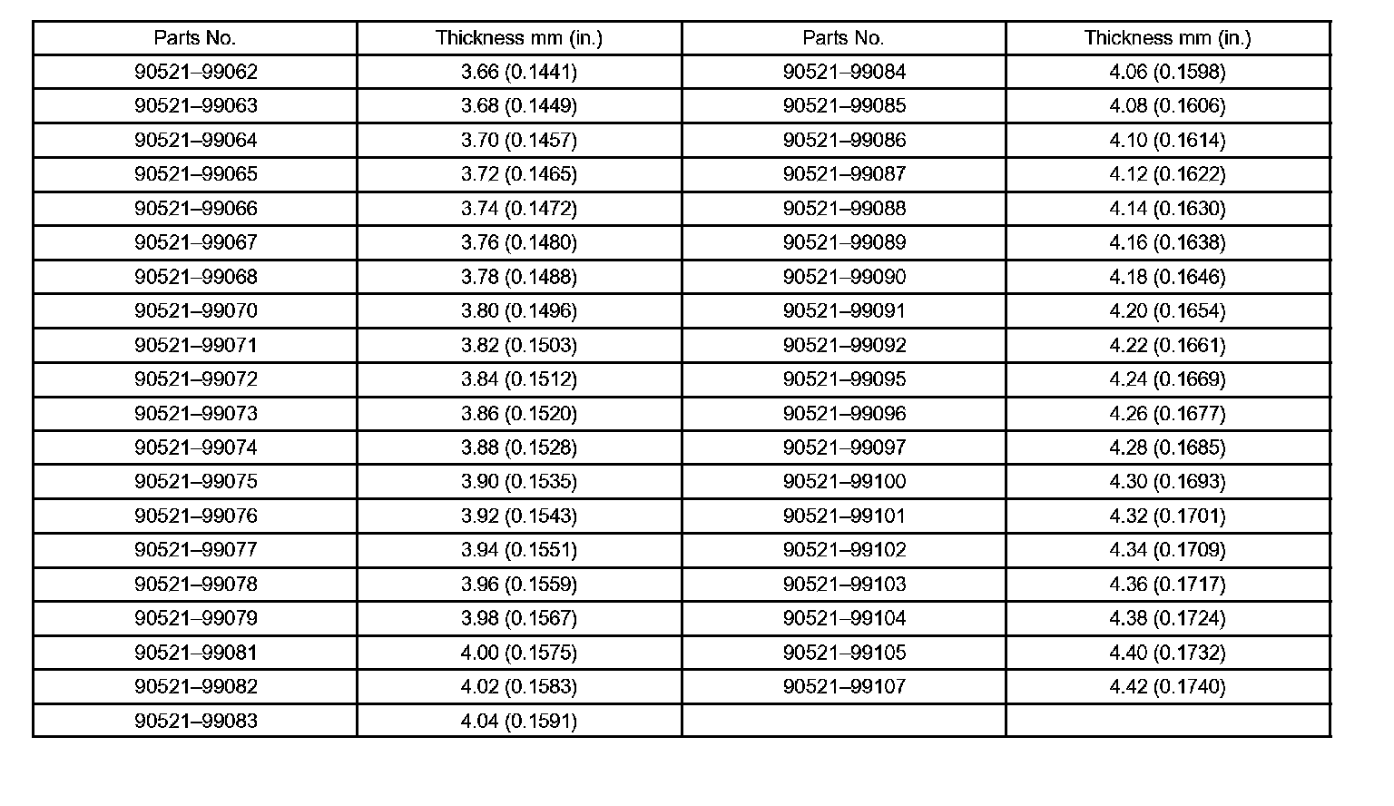 HINT: There are 42 thicknesses of the rear differential drive pinion plate washers available in 0.01 mm (0.04 inch) difference.