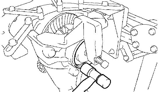 j. Using a plastic hammer, lightly tap the drive pinion side of the differential carrier.