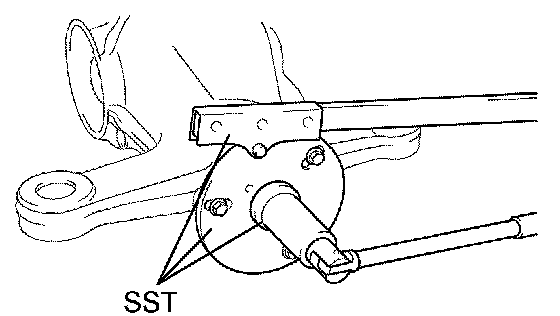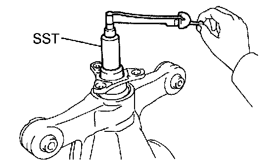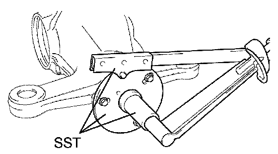 c. Using SST, hold the flange and tighten the nut while observing the preload with SST and torque wrench.