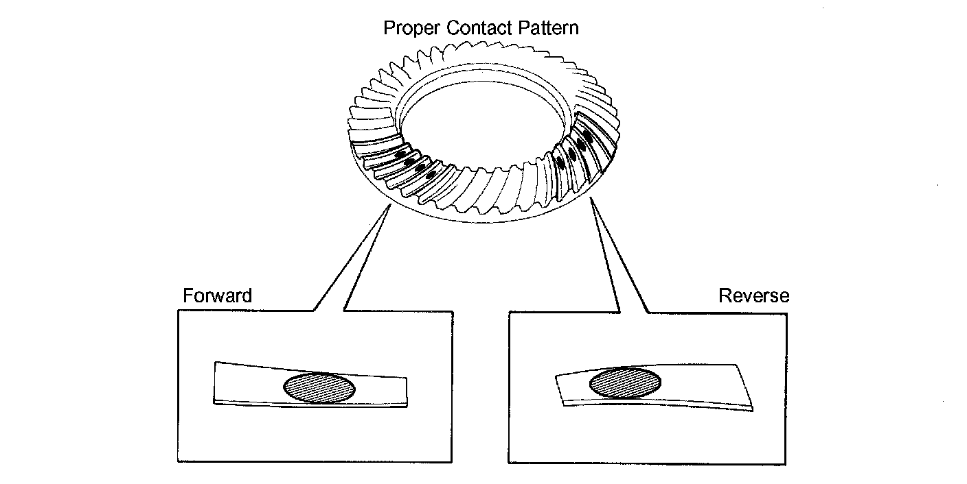 If tooth contact pattern is not correct, replace the adjusting washer installed on the front of the drive pinion rear bearing to adjust it.