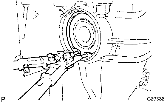HINT: Tighten the nut using approximately 98 Nm (1,000 kgf-cm) of force and then tighten it further while observing the preload.