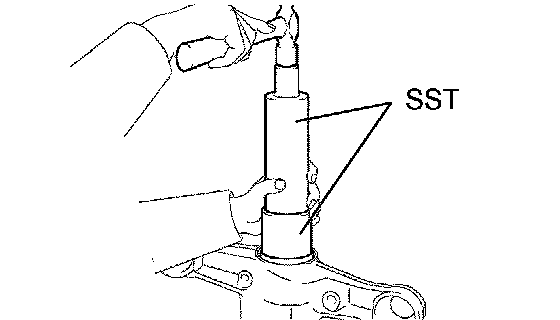 a. Using SST and a hammer, create a clearance between the side bearing (outer race) on the ring gear and side shaft shaft snap ring.