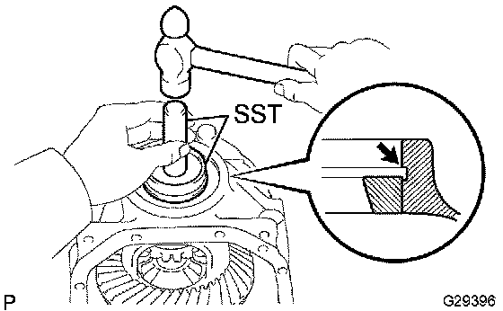 a. Using SST and a hammer, install the drive pinion side outer race.