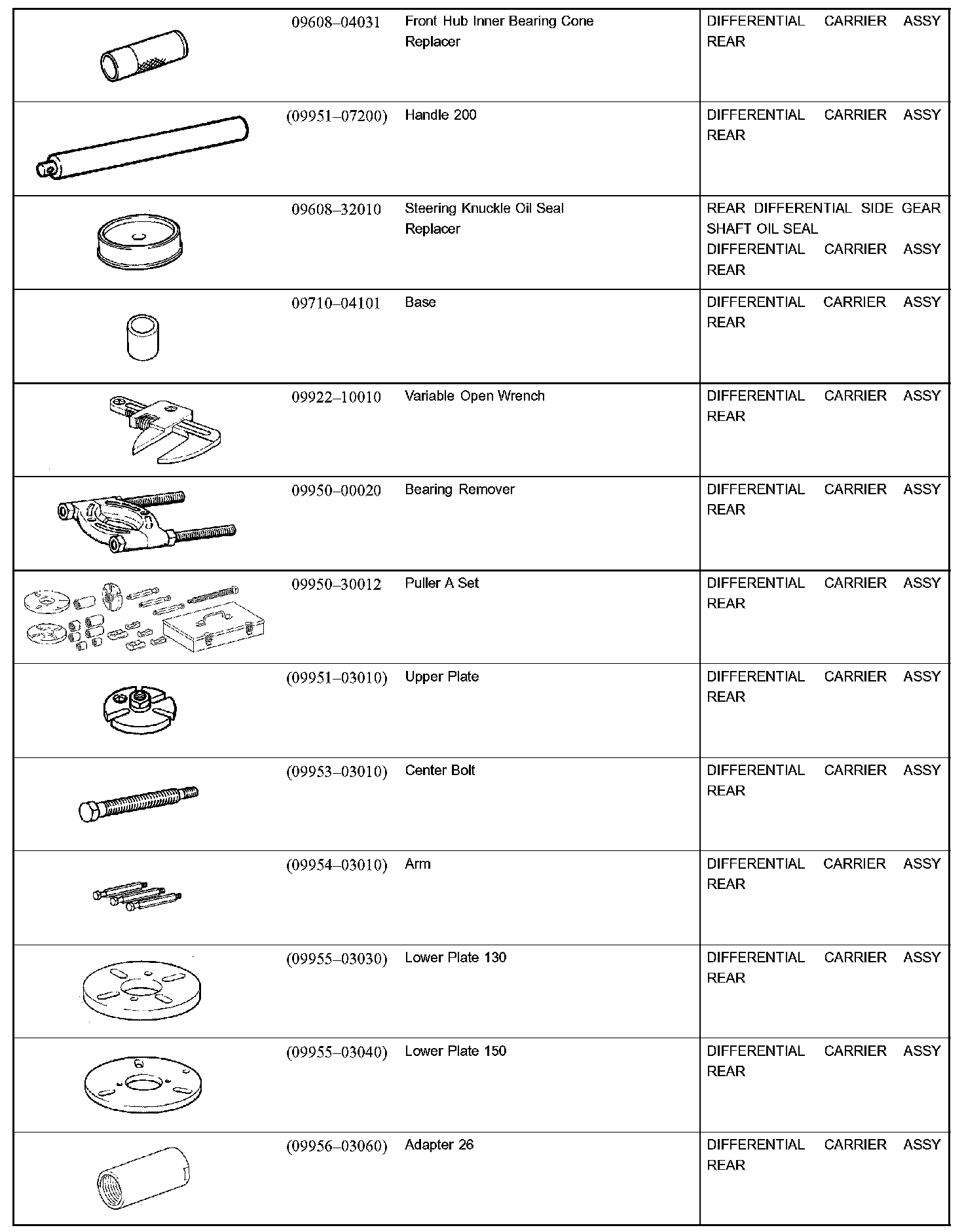 Differential Assembly: Tools and Equipment