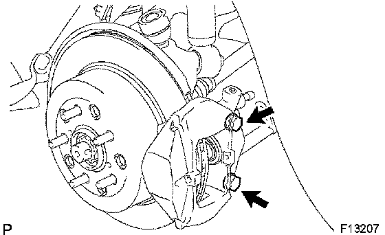 a. Remove the 2 bolts and separate the rear brake caliper from the rear axle carrier.