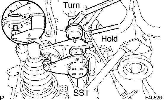 b. Using SST, disconnect the suspension arm No.2 from the axle carrier.