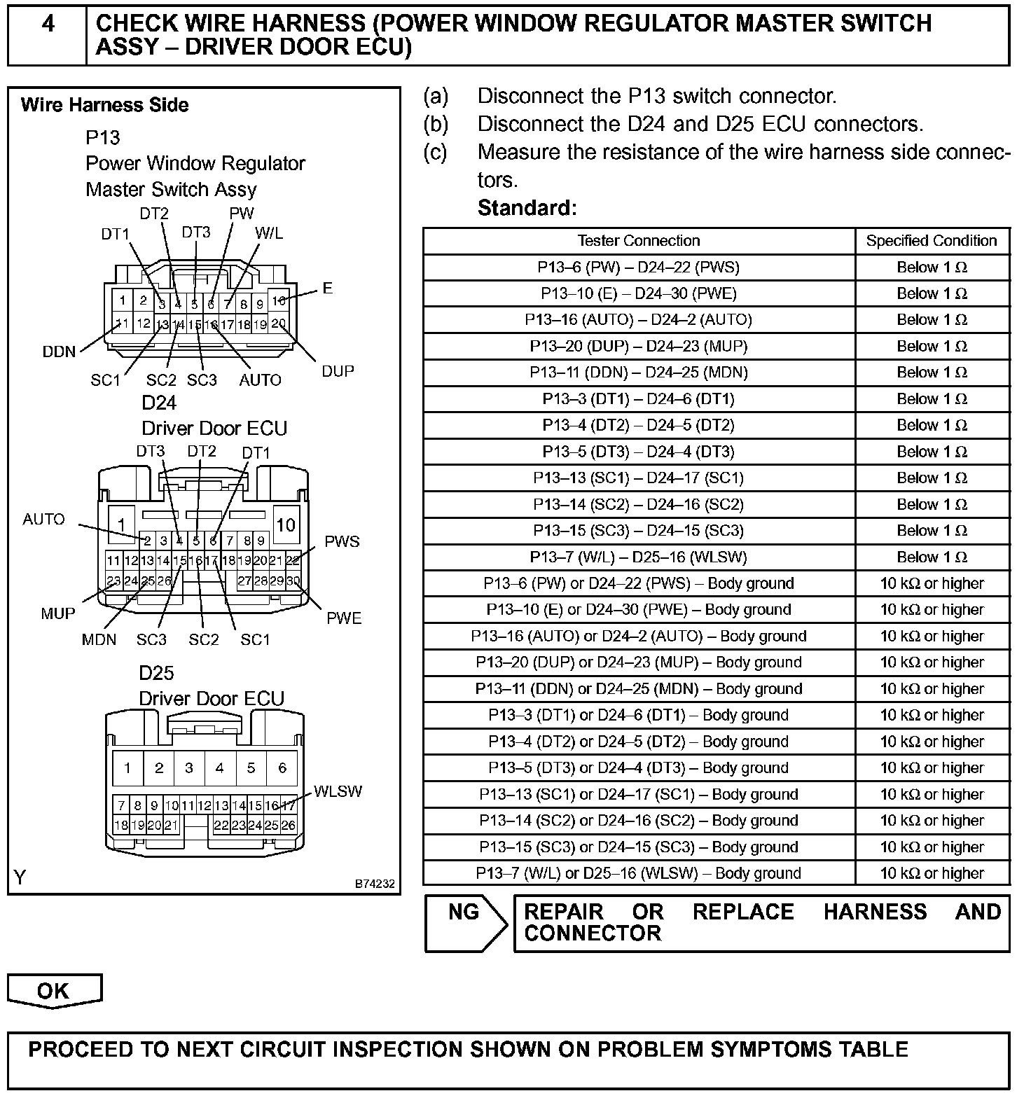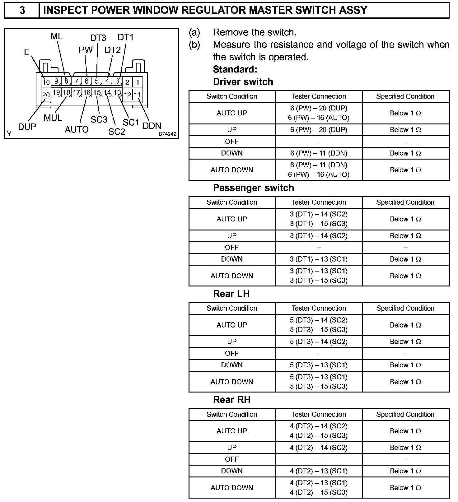Power Window Regulator Master Switch Circuit (Driver Side)