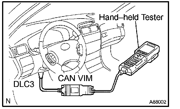 CHECK DTCa. Connect the hand-held tester to the Controller Area Network Vehicle Interface Module (CAN VIM). Then connect the CAN VIM to the DLC3.