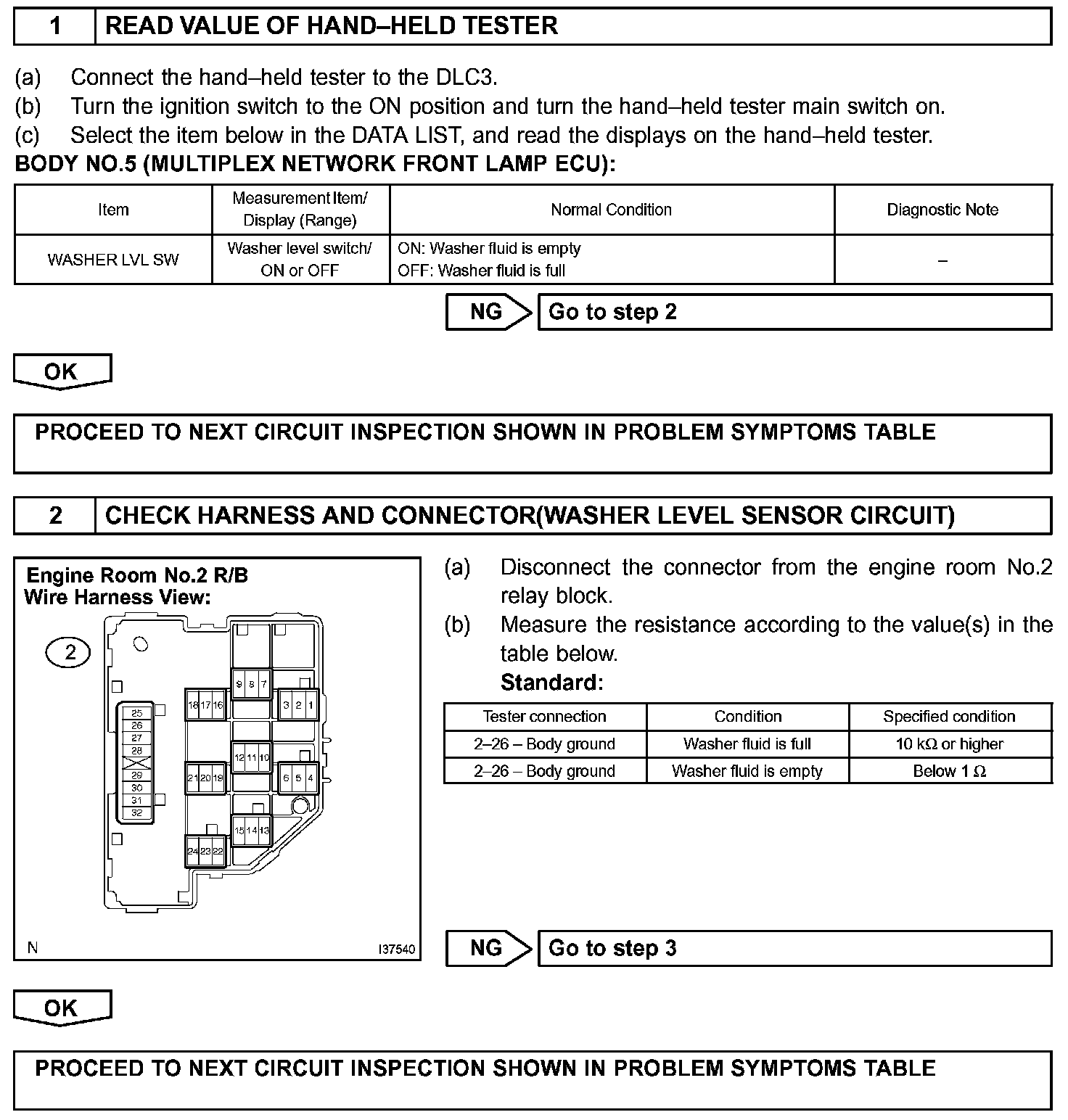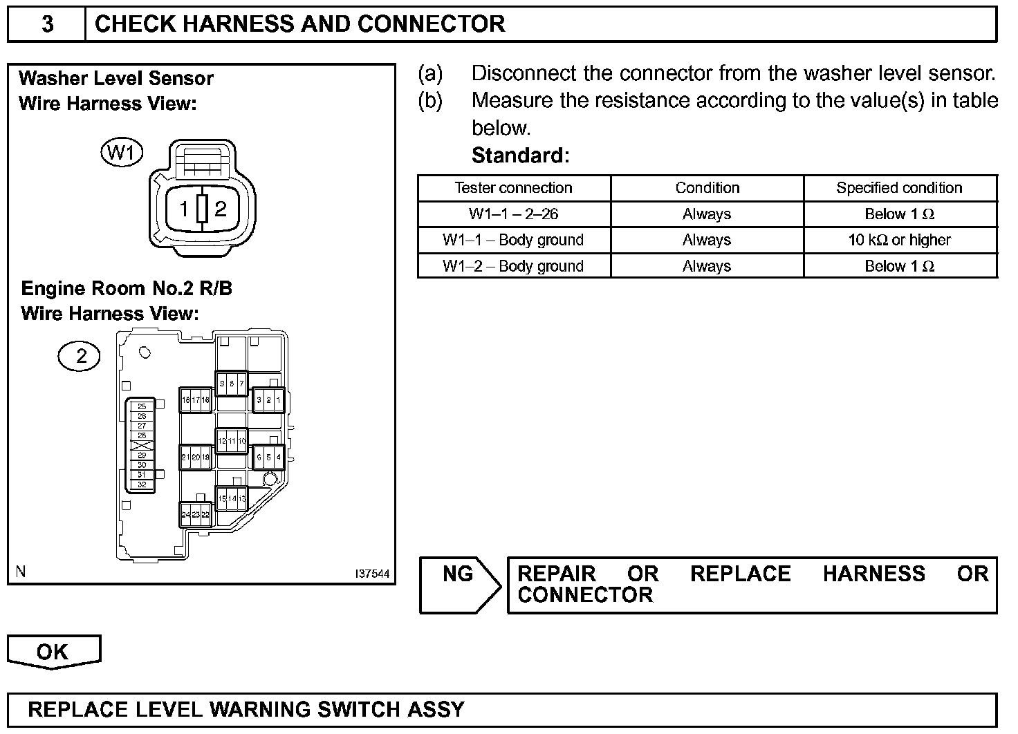 WASHER FLUID LEVEL WARNING SWITCH CIRCUIT
