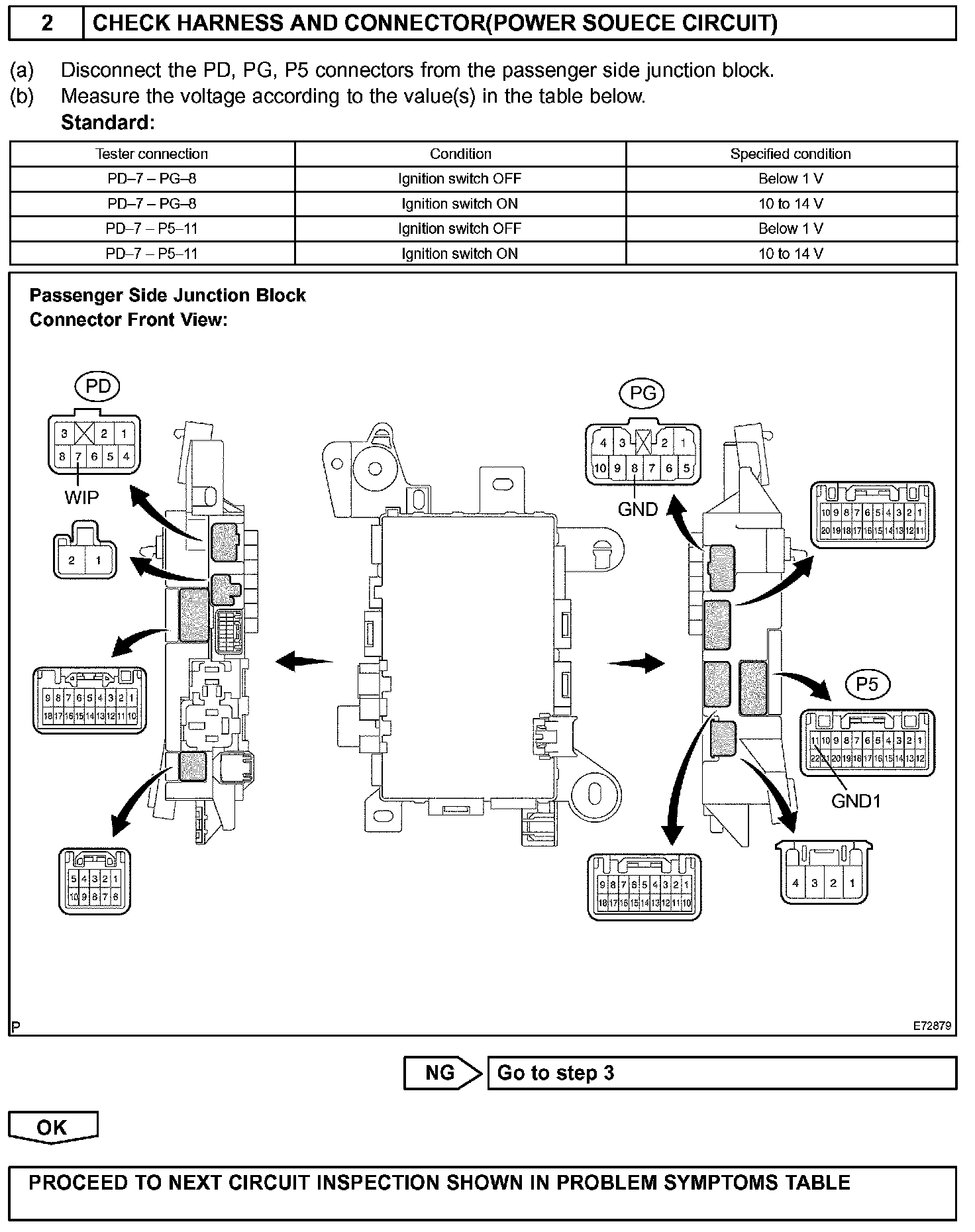 This circuit provides power to the front wiper motor and operates the passenger side junction block ECU.